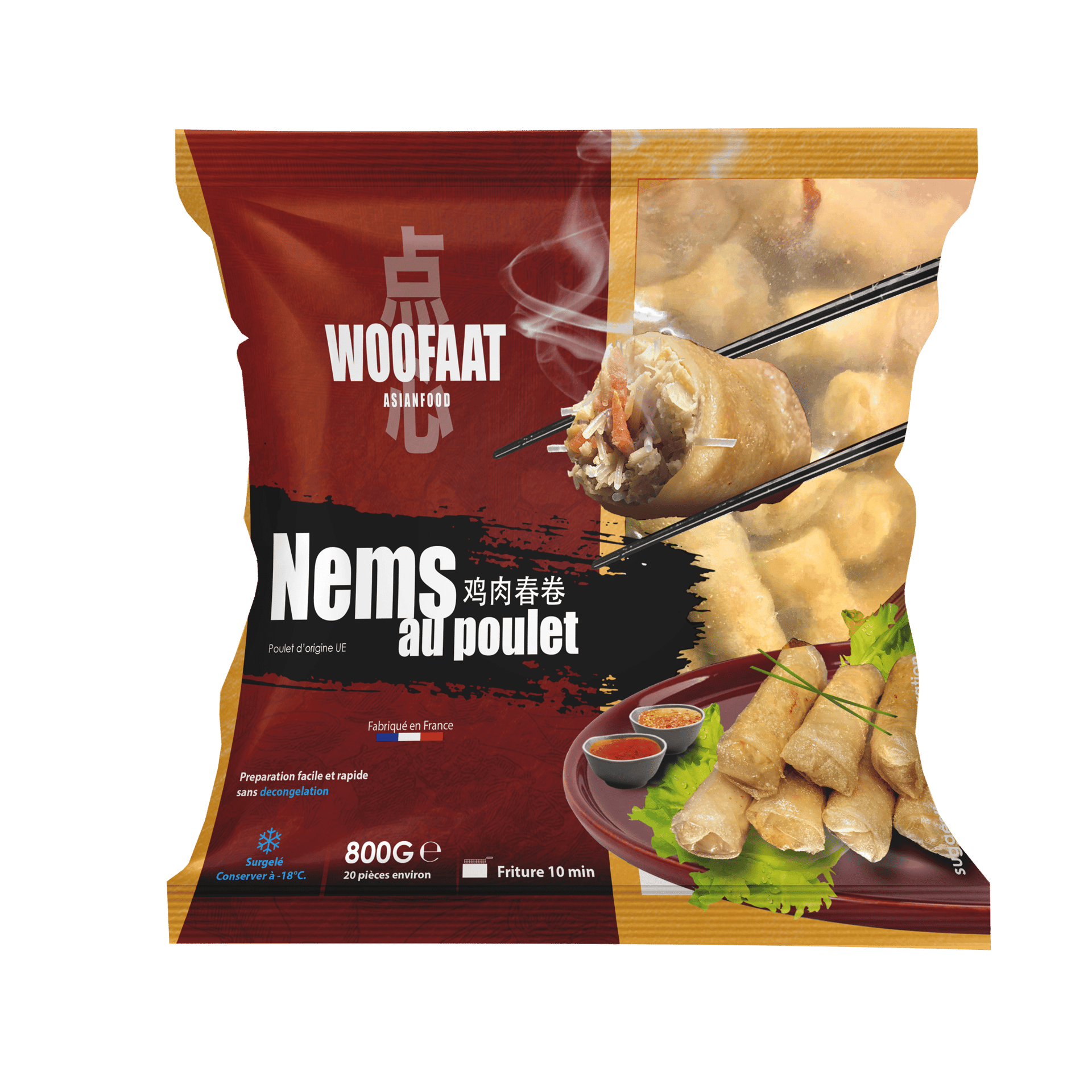 Faites frire les produits dans de l'huile à 160°C pendant environ 10 minutes, Dorés et croustillants. À consommer cuits à coeur.