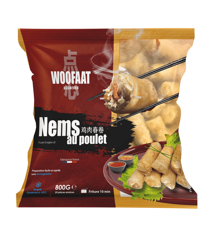 Savourez nos nems au poulet, fabriqué en France selon la recette de Akhisoum. Garnis de poulet tendre et d'ingrédients frais soigneusement sélectionnés, ils offrent un goût authentique qui rappelle les repas faits maison. Croustillants à l'extérieur, savoureux à l'intérieur, un plaisir à partager.